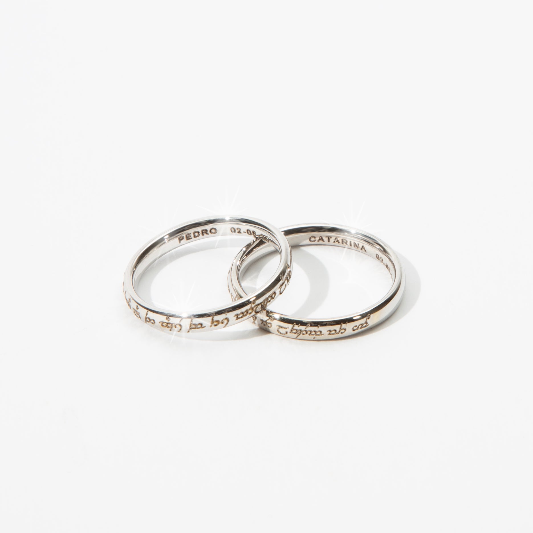 Uma mensagem de amor, iniciais gravadas, duas alianças que se unem e assim ficam para sempre.