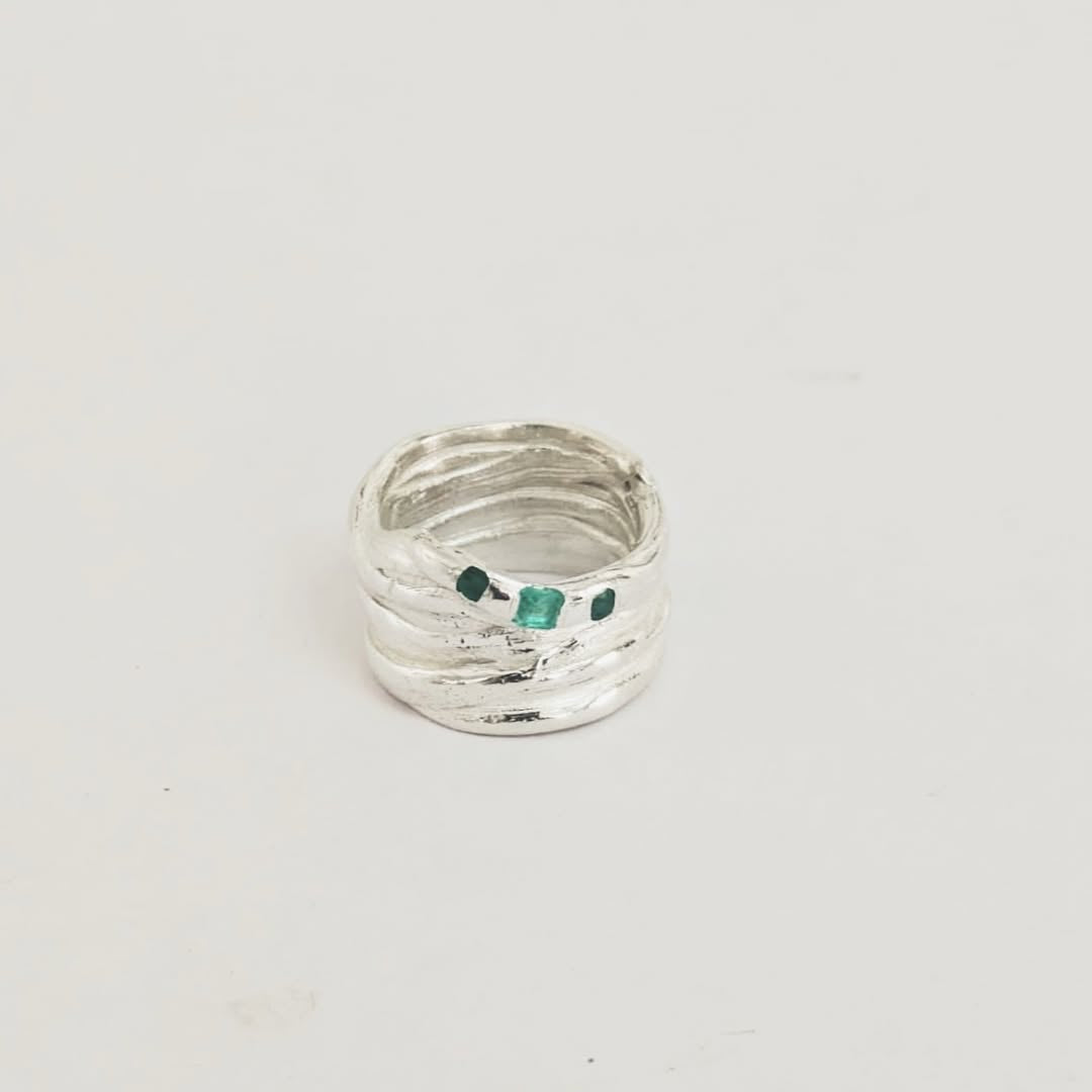 Anel feito com a técnica japonesa "mitsuro hikime" — através de um processo meticuloso, a cera é modelada de forma orgânica, criando texturas únicas que fazem lembrar movimento e natureza.